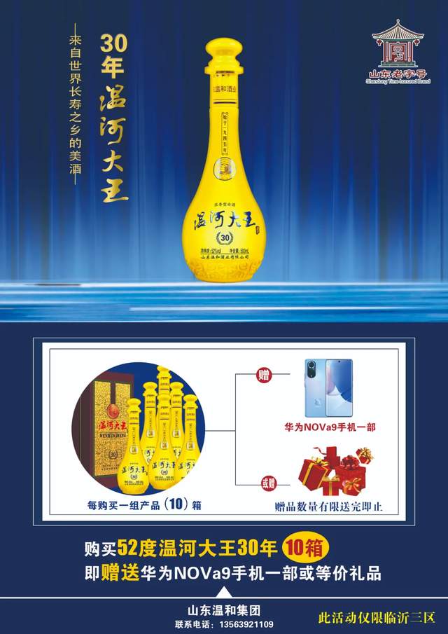 临沂三区:每购10箱,即赠华为NOVa9手机一部或等价礼品!