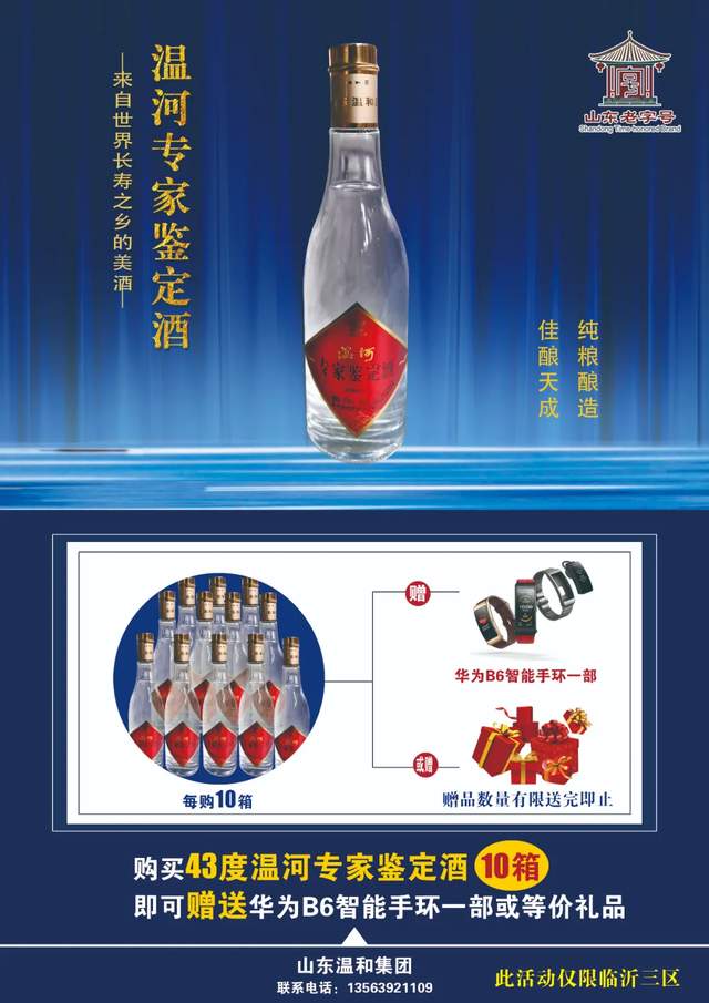 临沂三区:每购10箱,即赠华为B6智能手环一部或等价礼品!