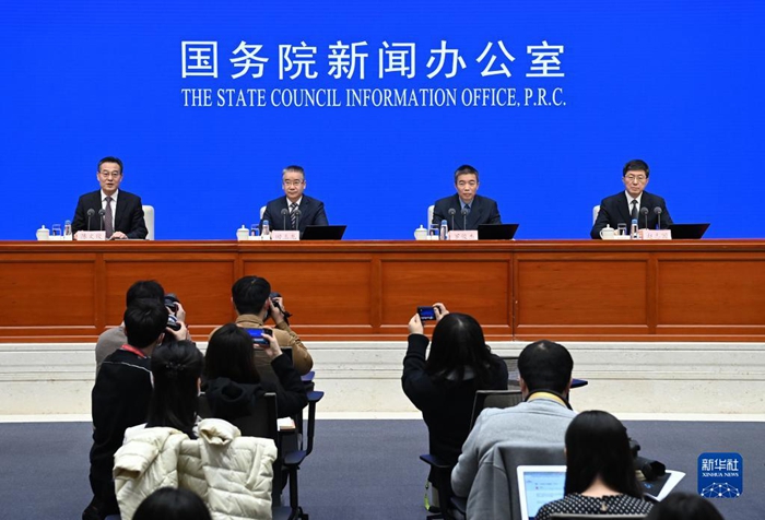 1月20日,国务院新闻办公室在北京举行新闻发布会,请工业和信息化部总工程师、新闻发言人田玉龙,新闻发言人、运行监测协调局局长罗俊杰,新闻发言人、信息通信管理局局长赵志国在发布会上介绍2021年工业和信息化发展情况,并答记者问。新华社记者李贺 摄
