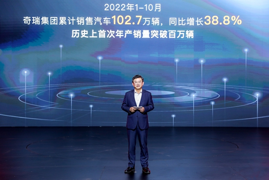 奇瑞汽车股份有限公司常务副总经理张国忠说:“1-10月份,奇瑞集团累计销售102.7万辆,同比增长38.8%,历史首次年产销量突破百万辆。在‘奇瑞科技DAY’上,发布‘瑶光2025’前瞻科技战略,加速向全球科技公司转型,支撑奇瑞加快打造世界主流品牌、一流企业的目标。”