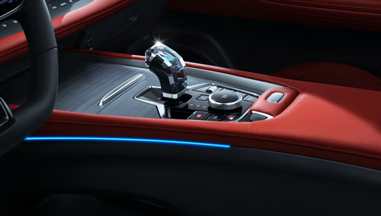 晶锐刀锋前格栅搭配晶彩灵眸LED前大灯,具有时尚优雅风范;凌厉锐意腰线,配合D 柱型格纹理,突出高端质感和运动气息。19吋晶钻先锋轮毂、专属活力“ T” 侧标,彰显年轻时尚运动型格。尾部贯穿式炫彩晶透LED尾灯、双边四排气尾喉造型等元素,将科技氛围、潮酷活力、速度力量融为一体。